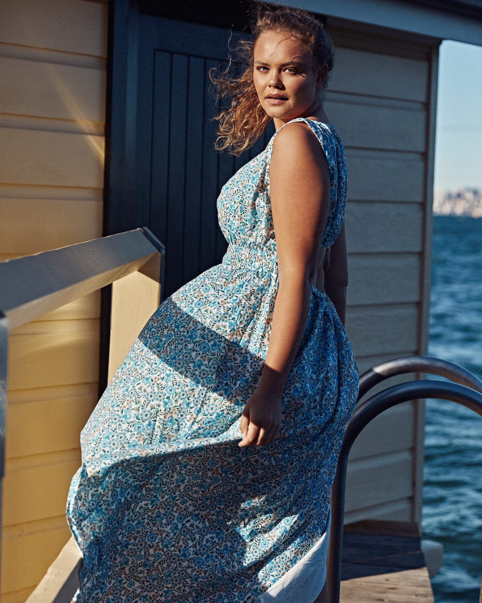 Meet the new style Cecilia, our feminine fairytale favourite. Charming in our exclusive Blue Fern print, this beautiful occasion maxi dress is crafted from pure cotton and a stand out at Louley HQ. We are beyond delighted to welcome this cut out style to our Summer Vesta collection. Featuring a stretch elastic waist with a considered in design cut out back that allows for undergarments to still be worn without being seen. Fully lined throughout, side splits and concealed side pockets. Stylish and sophisticated for any weekend event with casual strap sandals or sneakers or dress her up with your favourite gold accessories and wedge.