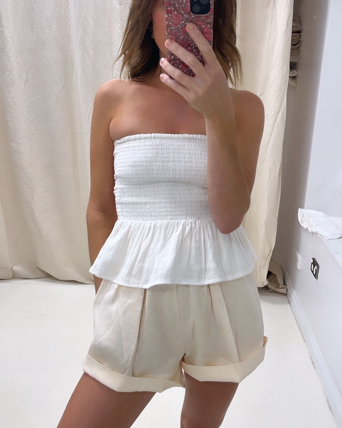 Easy to wear, effortless to style. The Hunter shorts have been crafted from 100% pure linen in a Macadamia colour. Made for comfort and the transition of day to day life. Featuring an elastic waist band that can be worn higher for a high waisted look or pulled down for the right fit for you. Adorned with pockets either side these shorts are an everyday, easy and effortless go to shorts.
