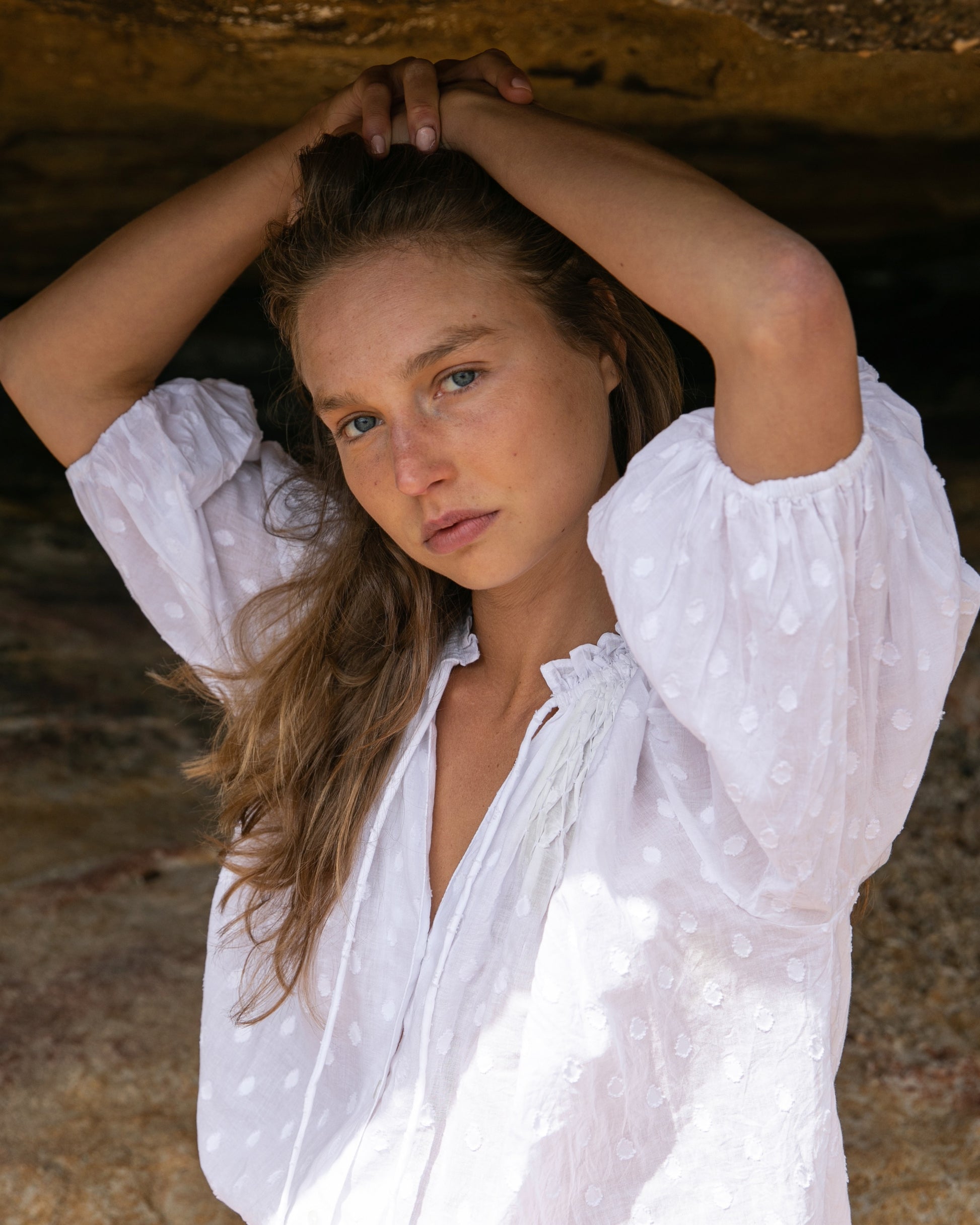 A subtle nod to femininity, the Lily blouse centres around an exaggerated balloon sleeve shape, elasticised at the elbow creating the illusion of drama and grandeur. Crafted by natural cotton for an organic shape and feel the Lily blouse features a button front that envelops a soft v-lined neck. Lily actively triumphs in the notion that beauty and comfort can work together in harmony.