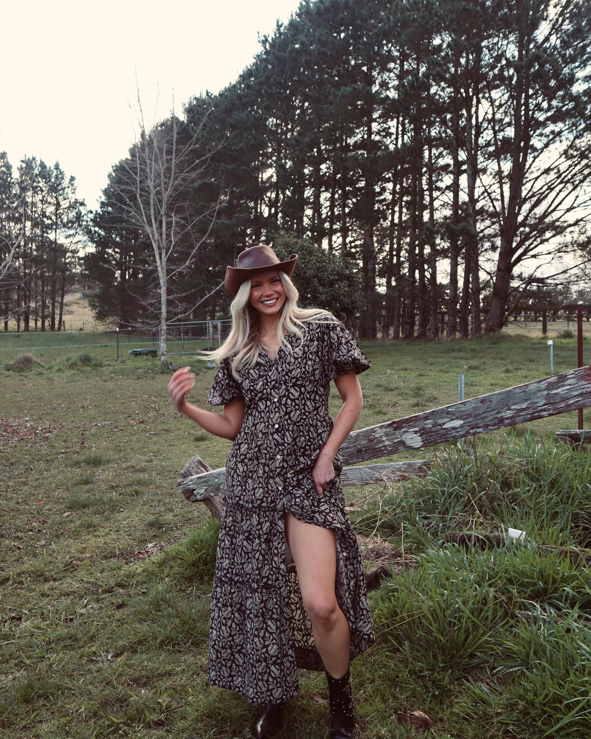 A vision of floaty dreams comes to life in our Rosabel Dress. The forever favourite style features a soft cotton fabric and features our new Nara print. Lined throughout the Rosabel dress begins with elbow length sleeves with elastic at the openings and a v-neckline before falling to a three-tiered silhouette.