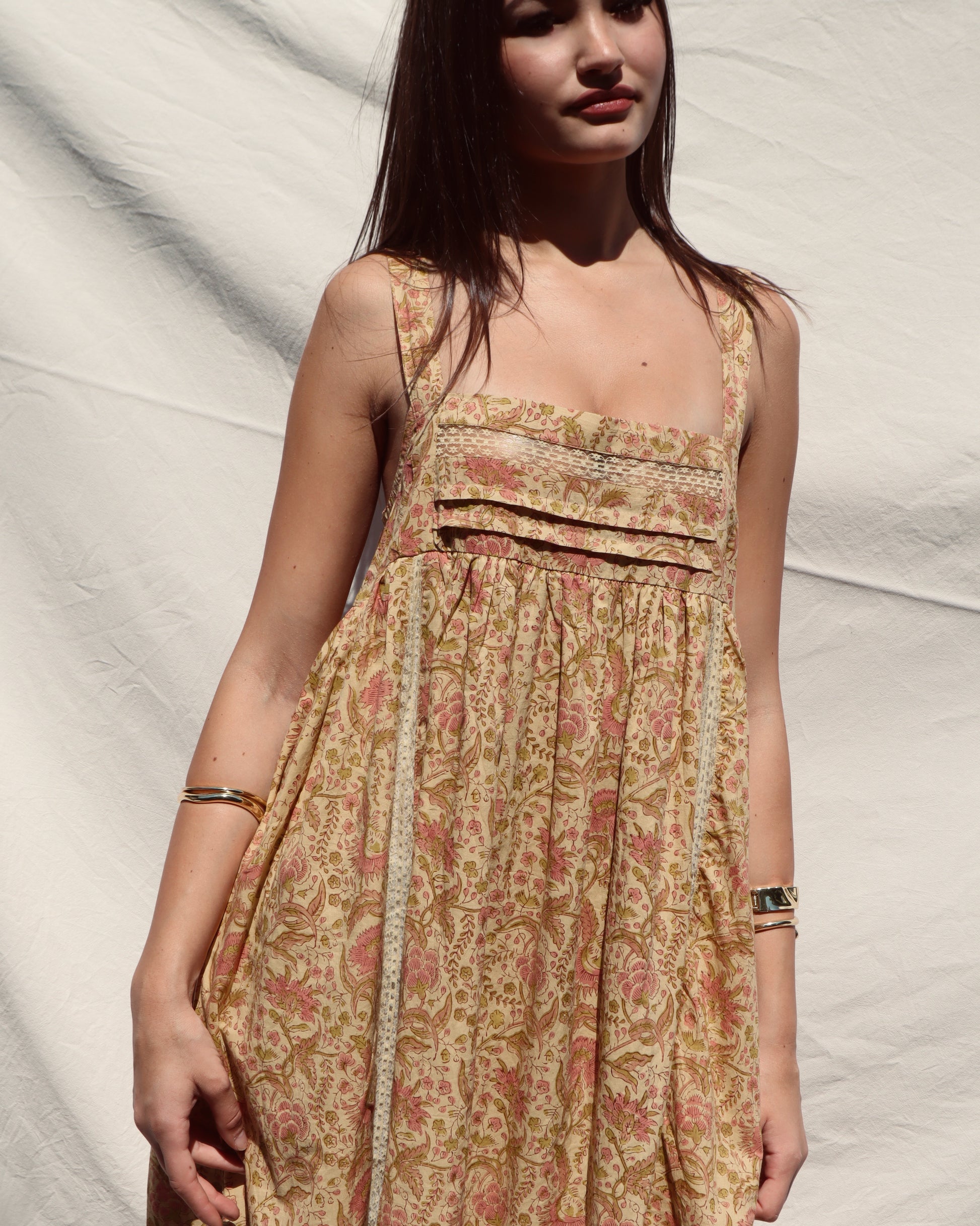 Meet Tilly, our endlessly romantic sundress, in the block print Marigold. This warm, vintage-inspired floral is printed on lightweight cotton for a breathable, floaty finish that’s perfect for golden afternoons and slow summer days.