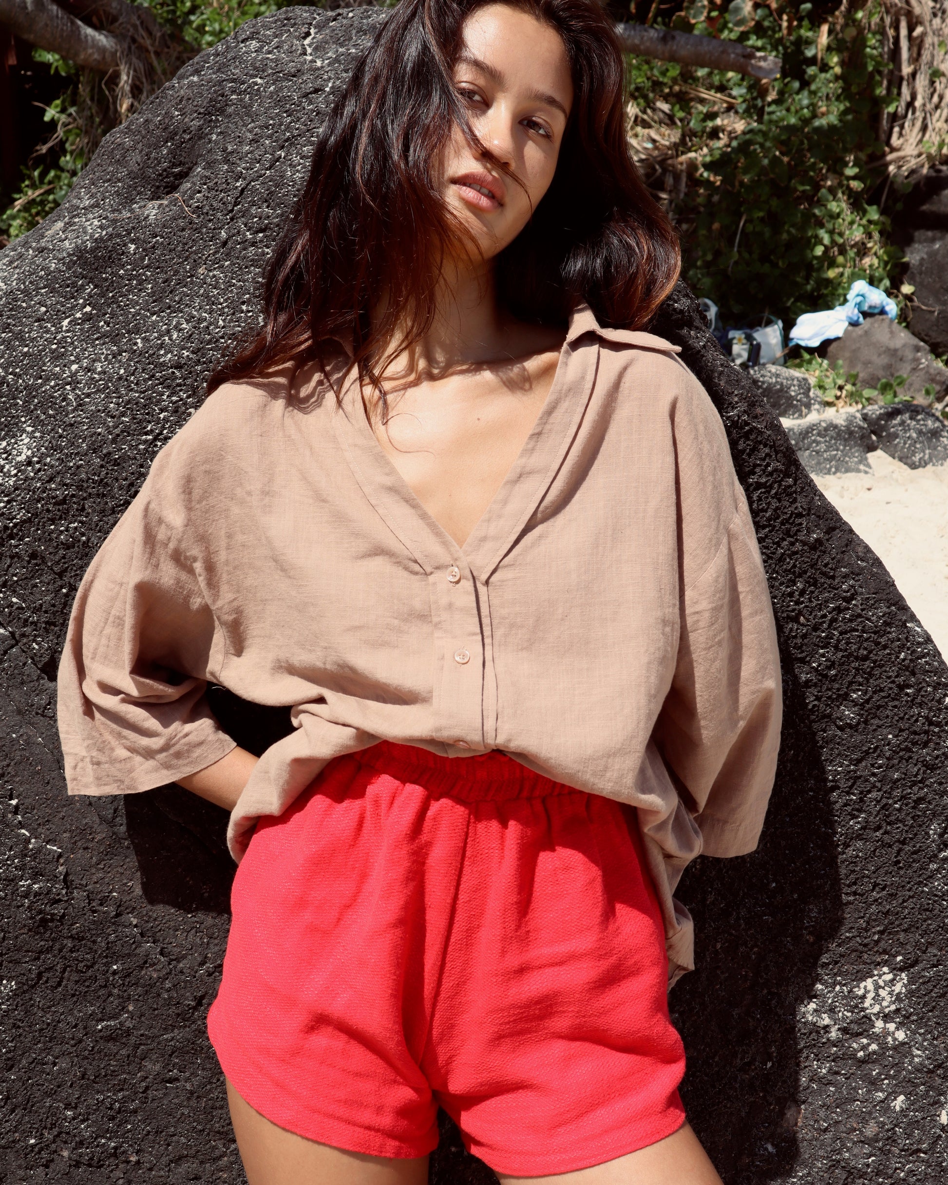 Designed with an easy, relaxed silhouette, the William features a button-down front, soft collar, and gently curved hem. Wear it as a light layer, or your go-to throw-on-and-go top.